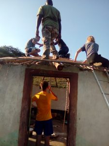 By the time the ZT group arrived at Mr Nkomo’s homestead, he had rebuilt the walls and the roof structure was in place. We explained to the students that in the morning we would be involved in building a new roof for Mr. Nkomo’s rondavel.